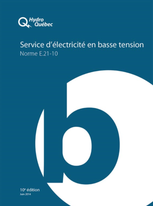 Le Livre bleu (norme E.21-10) d’Hydro-Québec décrit les caractéristiques du service d’électricité en basse tension et les exigences techniques associées. Il porte notamment sur les branchements permanents et temporaires (aérien ou souterrain), la mise en place ou la modification d’installations ainsi que le mesurage en basse tension, avec de nombreuses illustrations.