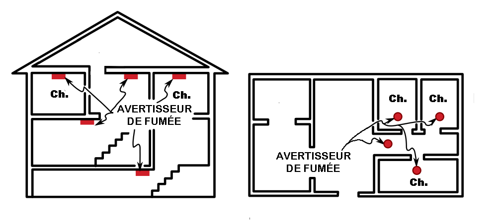 - Un avertisseur de fumée doit être installé dans chaque chambre ainsi qu’un par étage dans les corridors.